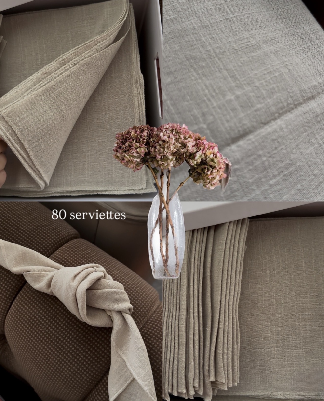 Serviette en tissu beige, format 45 × 45 cm, parfaite pour une table élégante et naturelle – nettoyage inclus.