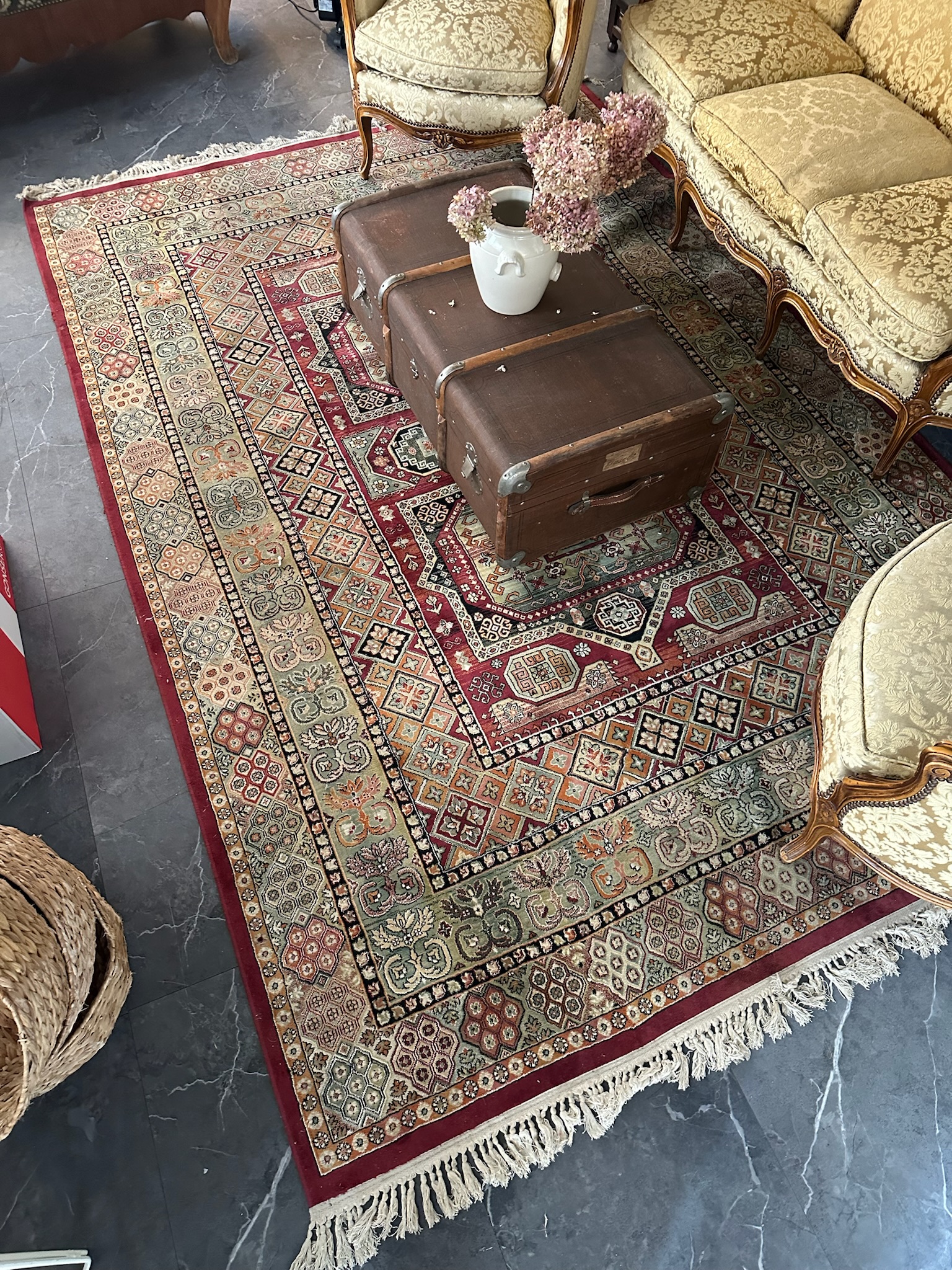 Tapis vintage bordeaux, au caractère affirmé, parfait pour faire ressortir vos meubles et sublimer vos mises en scène et photos.