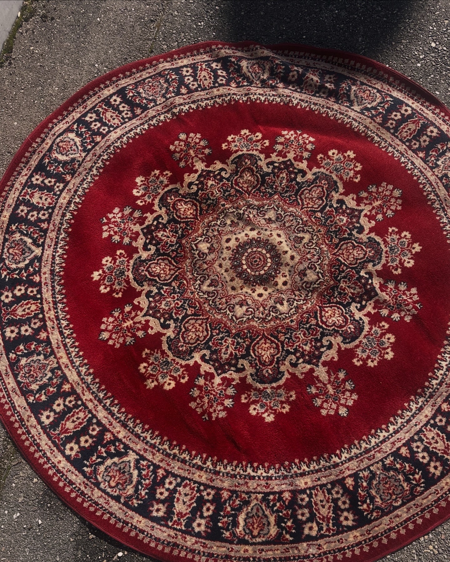 Tapis vintage rond, parfait pour faire ressortir vos meubles et sublimer vos mises en scène et photos.